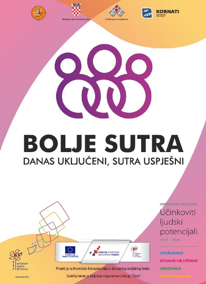 Projekt „Bolje sutra – danas uključen, sutra uspješni“ financira Europska unija iz Europskog socijalnog fonda, OP učinkoviti ljudski potencijali u iznosu od 780.913,83 kune tj. 100% ukupne vrijednosti projekta. Razdoblje provedbe projekta je 18 mjeseci, a provedba je započela 21.10.2019. Projekt provodi Udruga „ŽENA“ iz Drniša, a Javna ustanova Nacionalni park Kornati je partner.